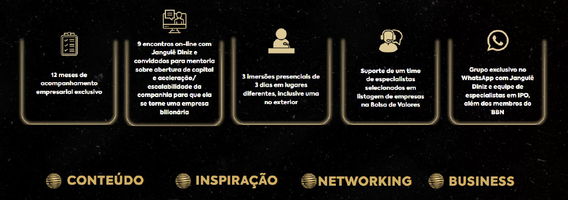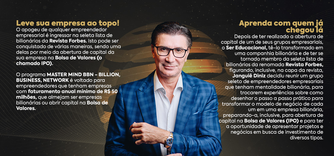 Para empreendedores empresariais que desejam elevar sua empresa a um novo patamar de desenvolvimento, aceleração e escalabilidade, fazendo com que ela se torne uma empresa bilionária, preparando-a, inclusive, para abertura de capital na Bolsa de Valores.